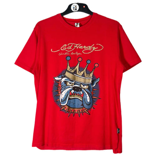 Ed Hardy Bulldog Crown Graphic Tee Red Rhinestone Y2K T-Shirt L