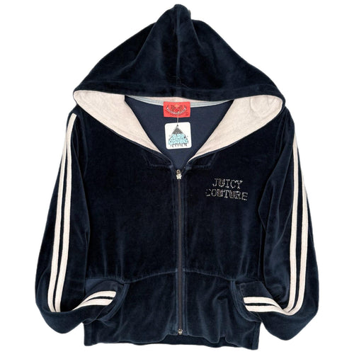 Juicy Couture Navy Stripe Rhinestone 91 Y2K Mcbling Hoodie, Size L