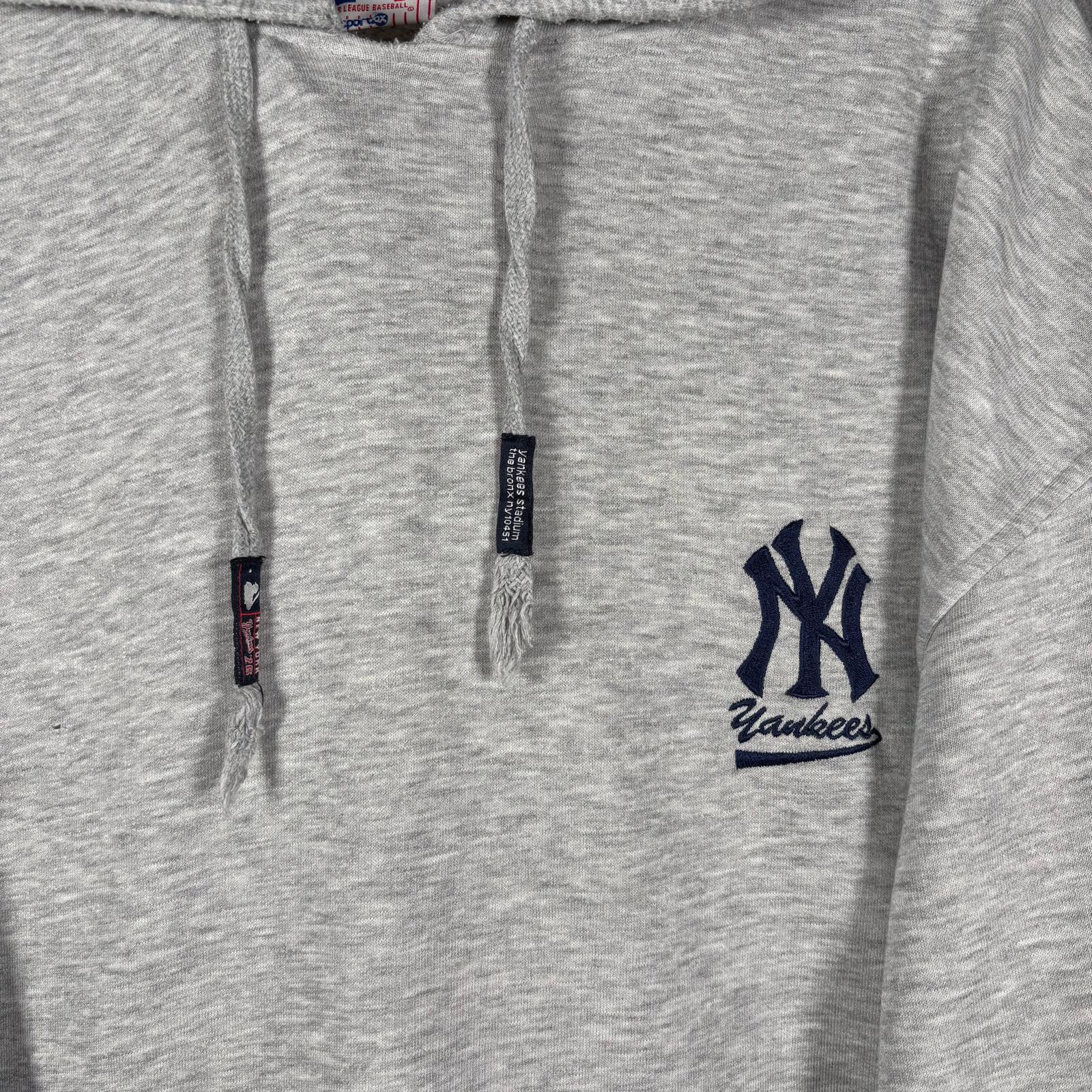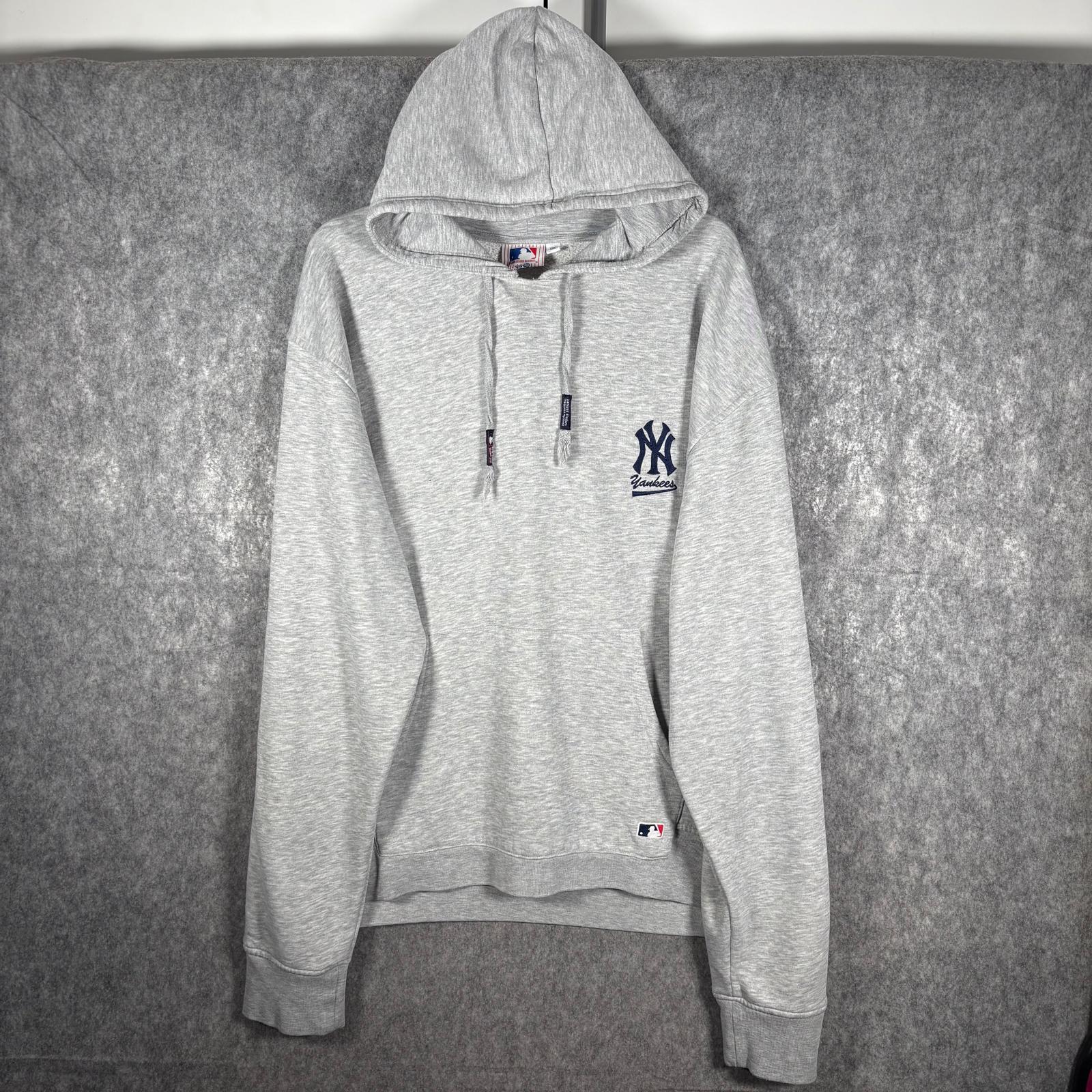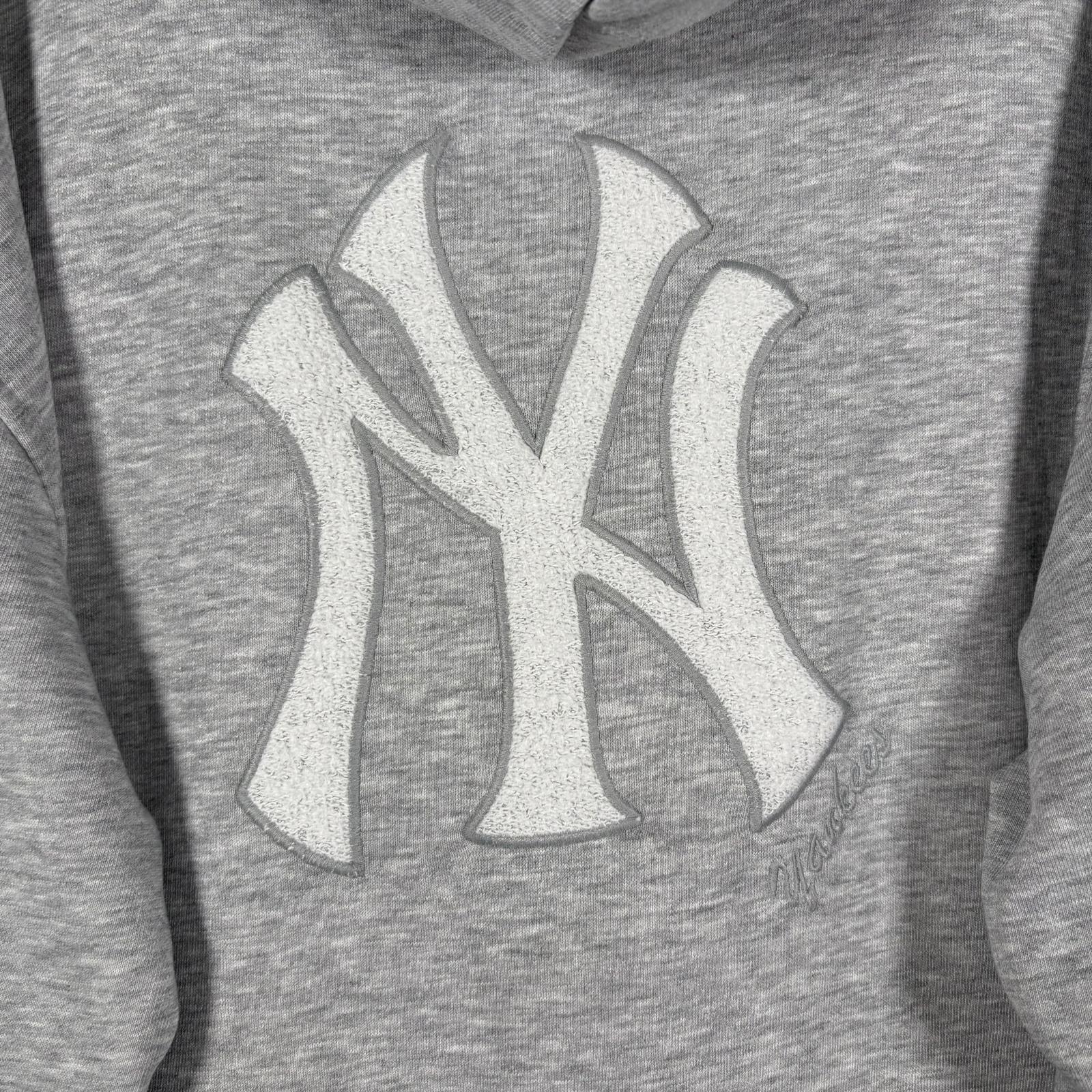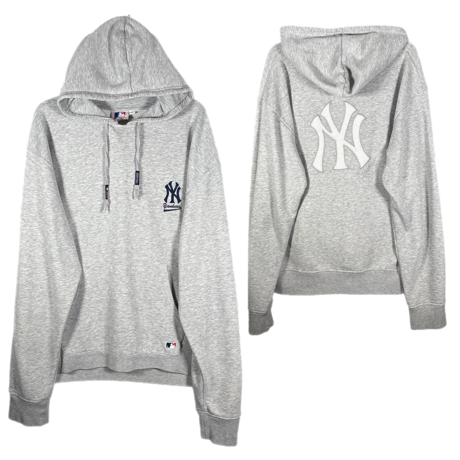 Clean grey MLB New York Yankees hoodie featuring the iconic NY logo embroidered on the chest and a large appliqué logo on the back. Proper heavyweight feel with that perfect relaxed Y2K fit — ideal for layering with baggy jeans or cargos. A staple piece for anyone into sportswear, hip-hop or 2000s street fashion.