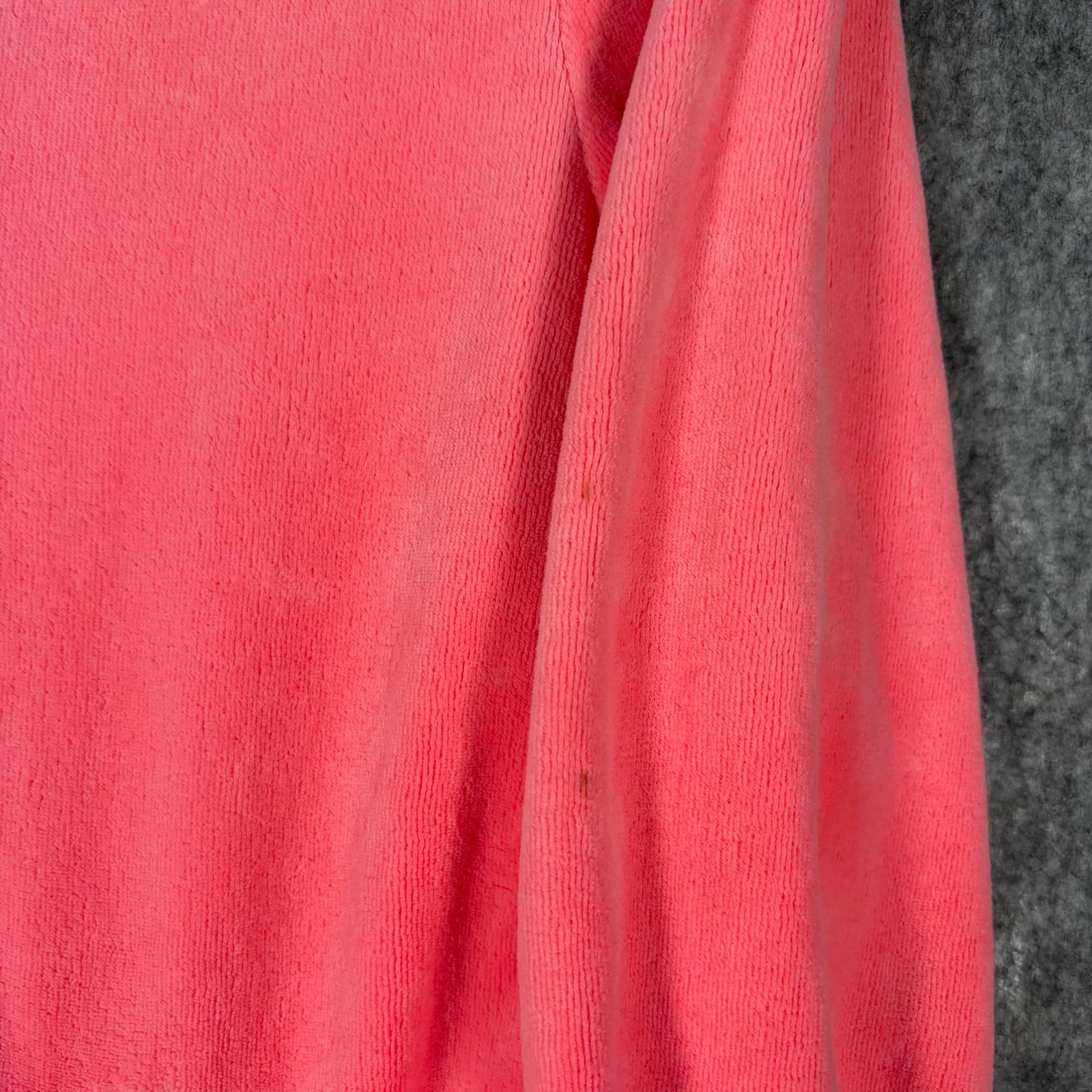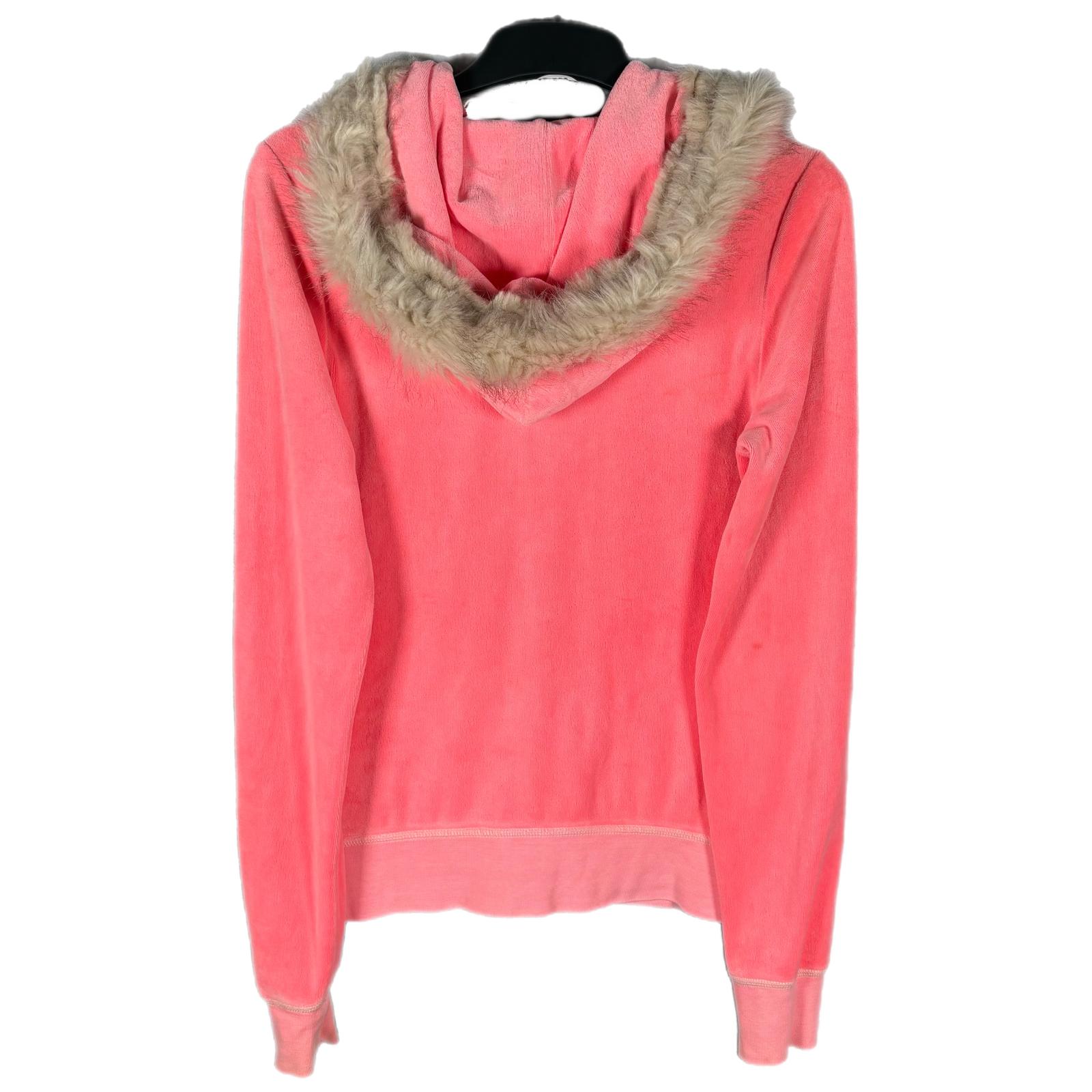 Y2K Juicy Couture velour zip-up hoodie in a bright candy-pink colourway, reworked with faux-fur trim added around the hood. Classic Juicy silhouette with pouch pockets and soft velour finish. A proper early-2000s piece — perfect for Y2K, coquette, Malibu-grunge and celebrity-style fits.